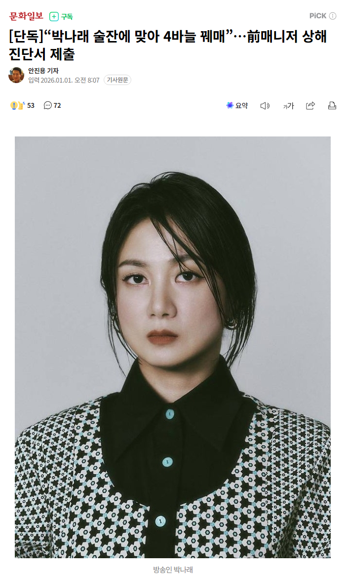 "박나래 술잔에 맞아 4바늘 꿰매"
