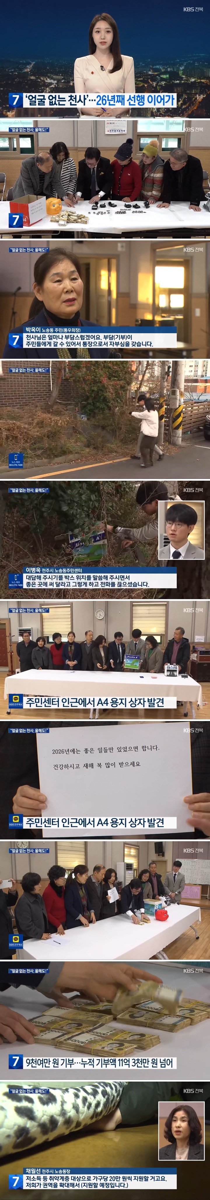 전주 얼굴없는천사 26년 째 기부 총액 11억 3천만원