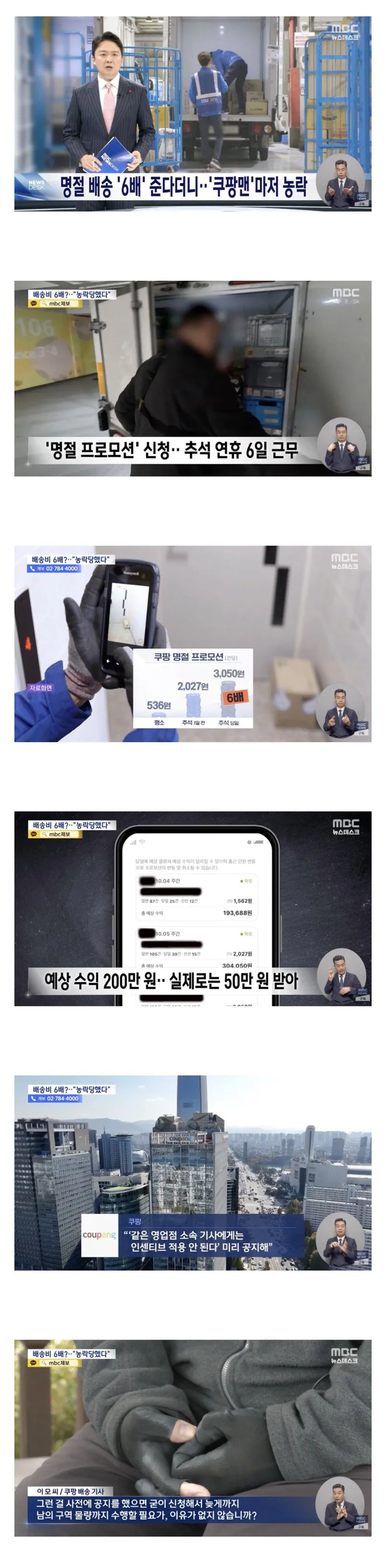 6배 준다더니.. 연휴 때 일한 쿠팡맨들 농락