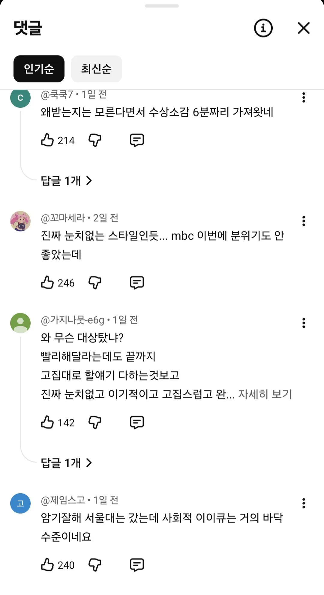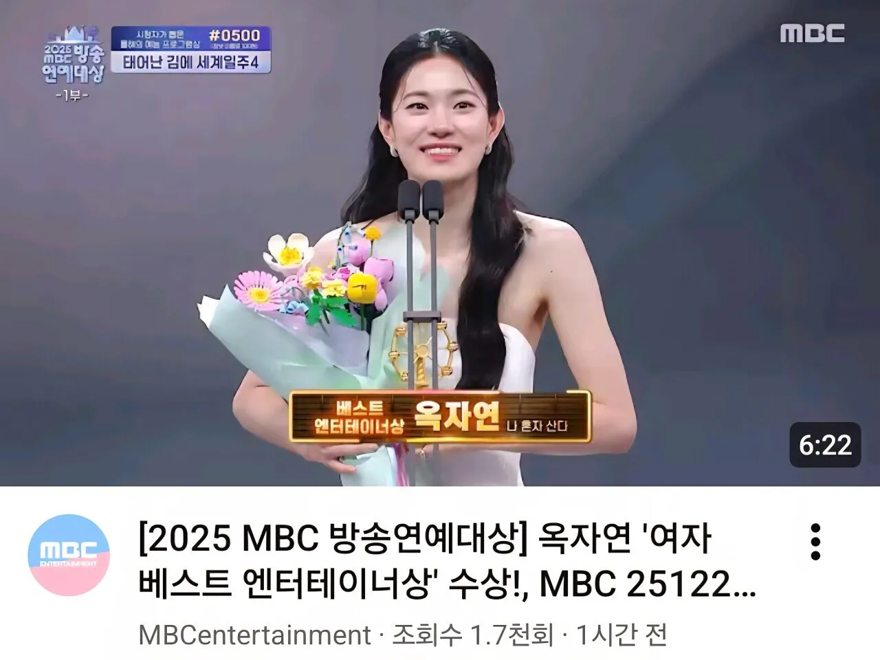 쯔양 vs 옥자연 둘다 수상소감 6분했는데 온도차 살벌하네