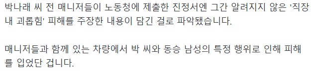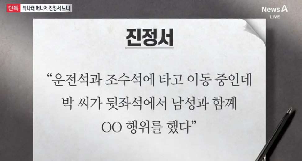 박나래 전매니저 "박나래 차량에서 남성과 특정행위"