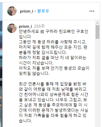 죽은 여동생을 위해 5년 간 싸운 故 구하라 오빠