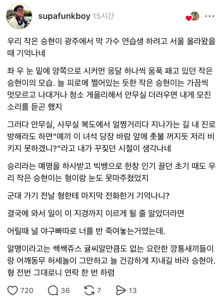 어떤 일반인이 스레드에 이런 글을 남김