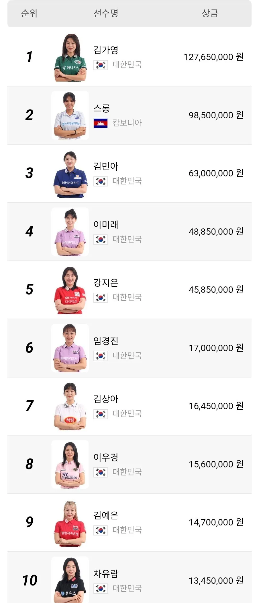 LPBA 랭킹5위 강지은 92년생