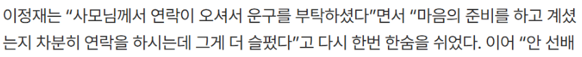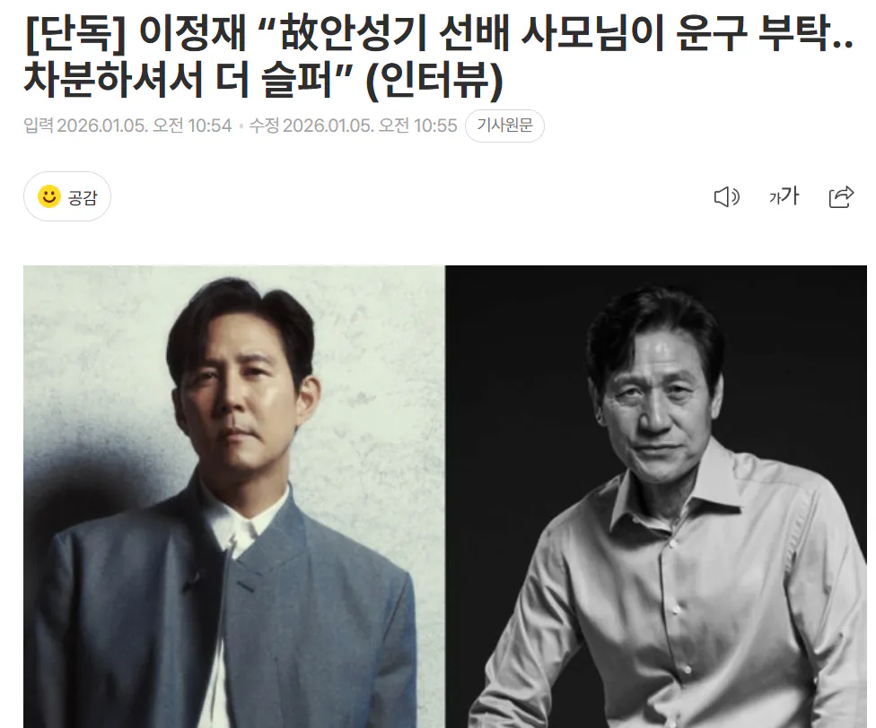 이정재 “故안성기 선배 사모님이 운구 부탁”