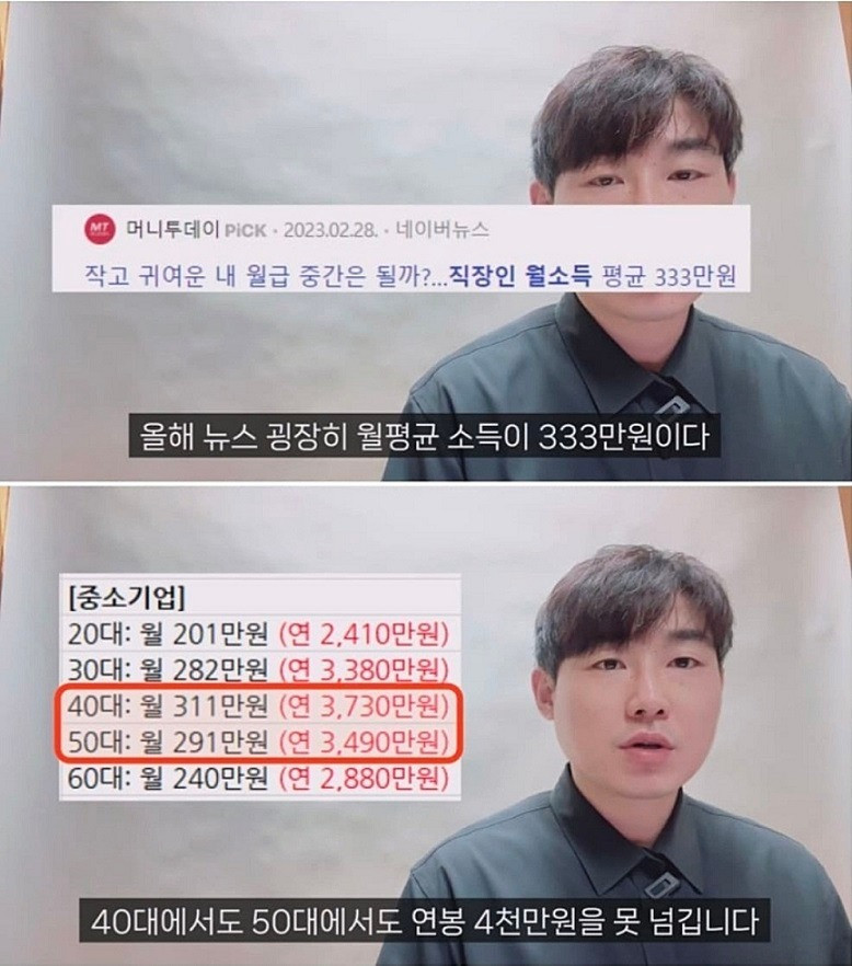 중소기업 4년차 직원의 연봉 액수