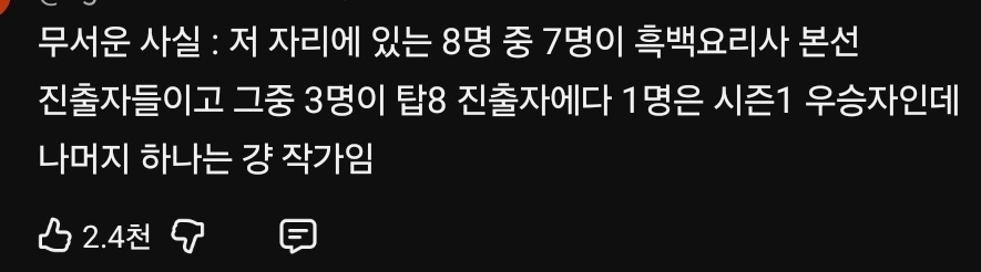 냉부 출연진 8명의 흑백요리사 경력 분석