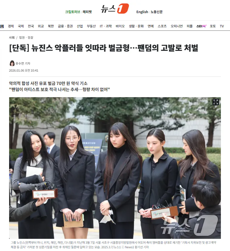 뉴진스 악플러들 잇따라 벌금형…팬덤의 고발로 처벌