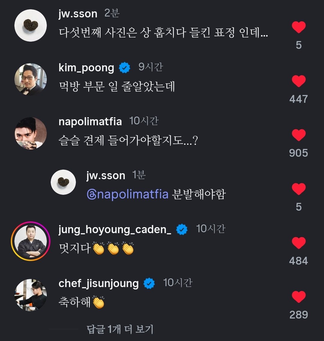 윤남노 인스타에 댓글 단 냉부 셰프들