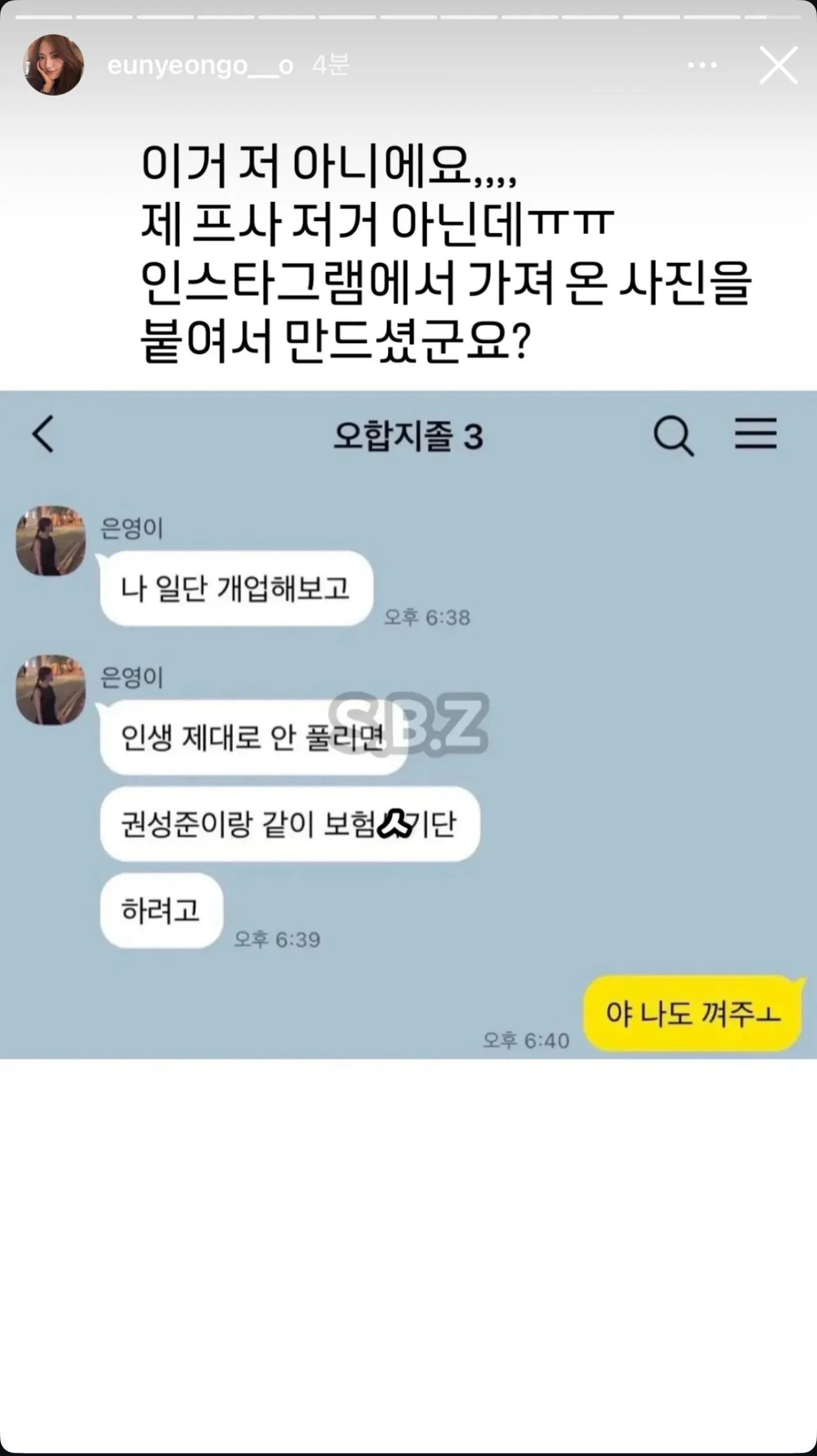 박은영 피셜) 보험사기단 카톡 짤 나 아니다