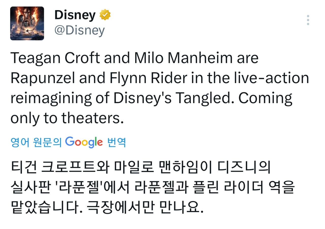 라푼젤 실사영화 배우 캐스팅 발표
