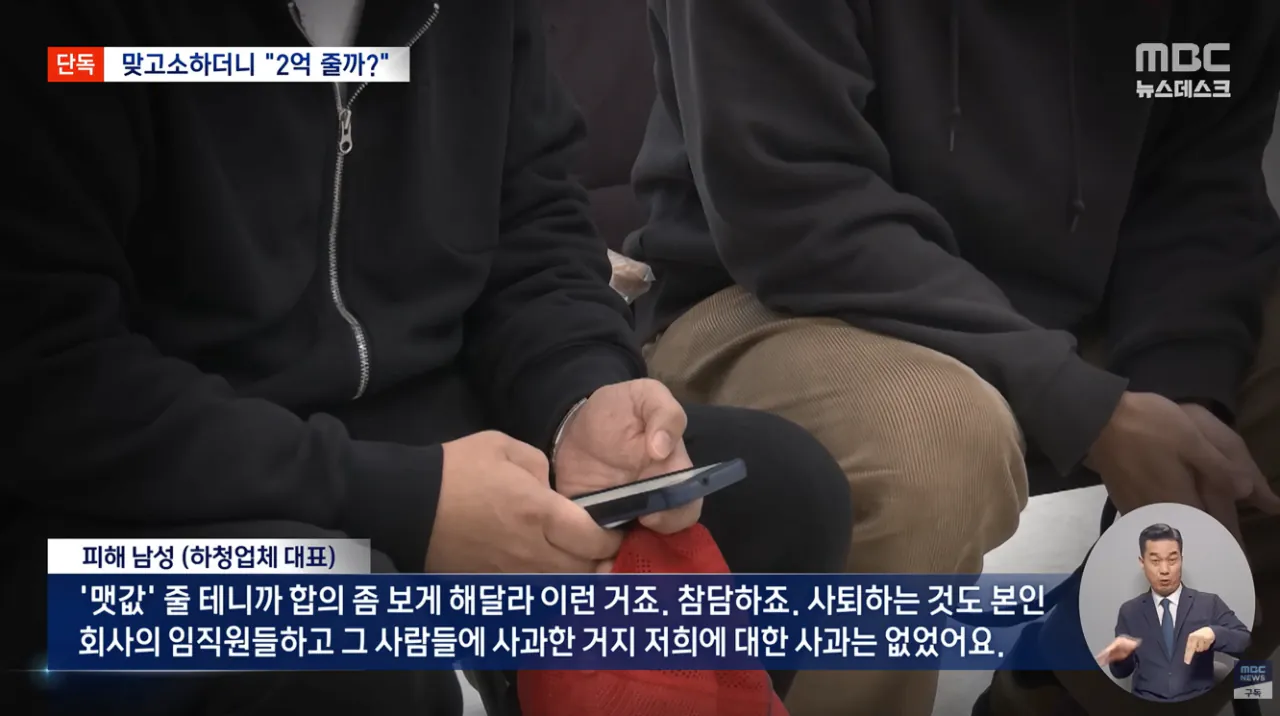 사람 개패듯이 패놓고.. 2억에 합의하자..
