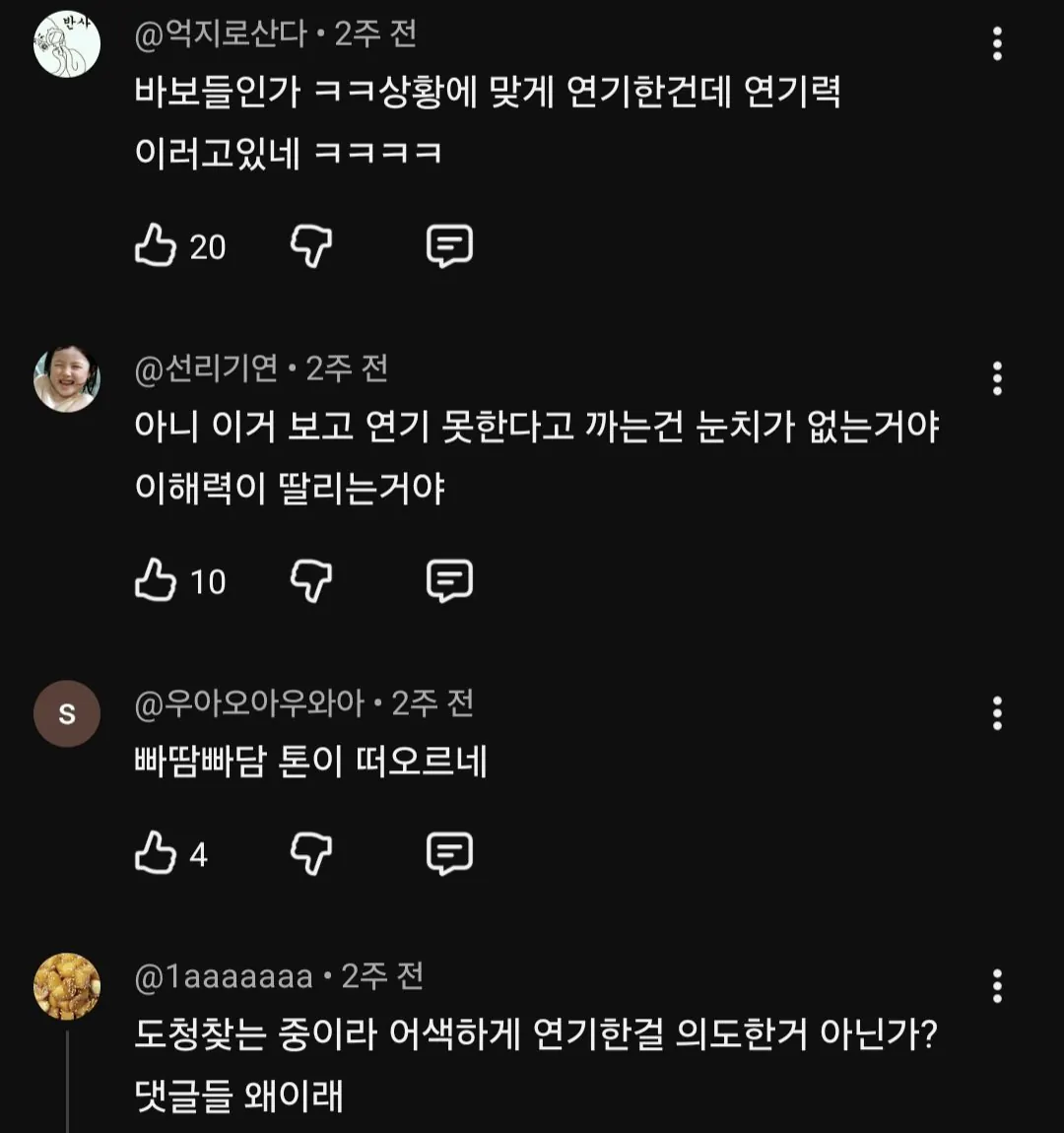 [그거 감안해도 발성,발음 등이 몰입에 방해될 정도로 연기를 못한다]