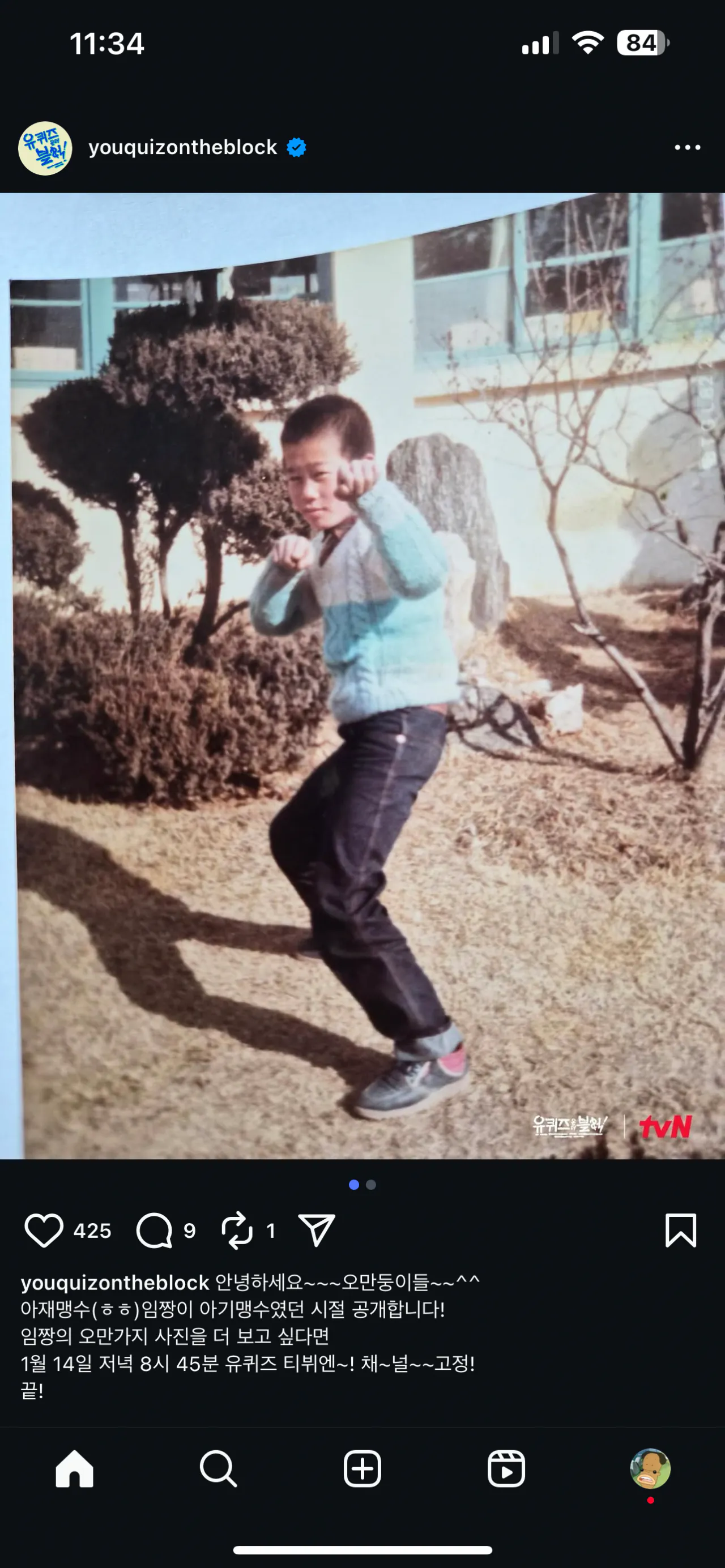 유퀴즈 공식 인스타에 올라온 임짱 어릴 때 사진