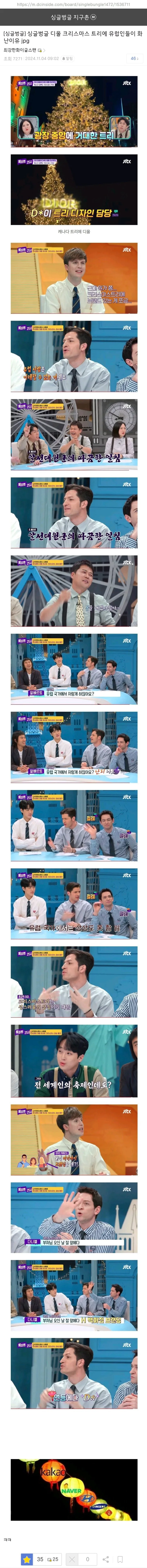 디올 크리스마스 트리에 유럽인들이 화난 이유 댓글 0 조회 567 2026-01-12 08:41 돌잔치앤가반나 Lv.11 게시글 보기 총 게시글: 1,441개 총 댓글: 0개 돌잔치앤가반나님의 다른 글 26.01.12 "개고기 식용 금지시킬거면 육식 금지령 내려야 한다" 26.01.12 은근히 호불호 갈리는 만화 장르 26.01.12 호불호 갈리는 승무원 관상 26.01.12 화보 찍다가 놀란 문샤넬