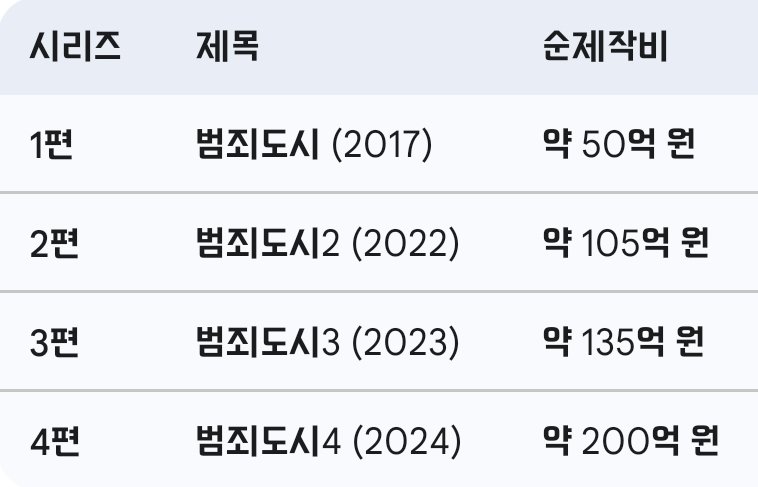 영화 범죄도시 시리즈 제작비
