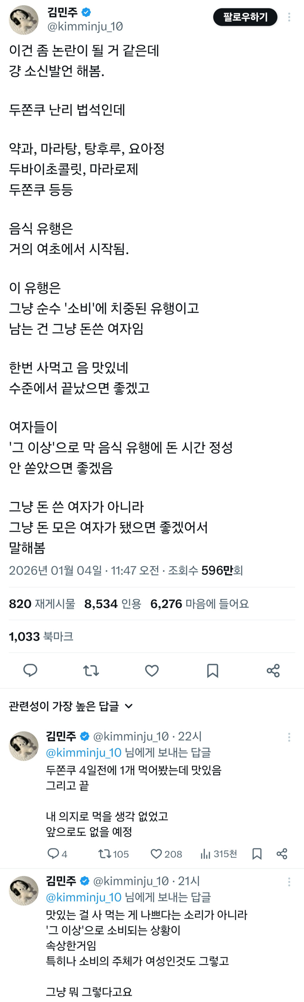 음식 유행에 돈 쓴 여자가 아니라 돈 모은 여자 됐으면 좋겠다