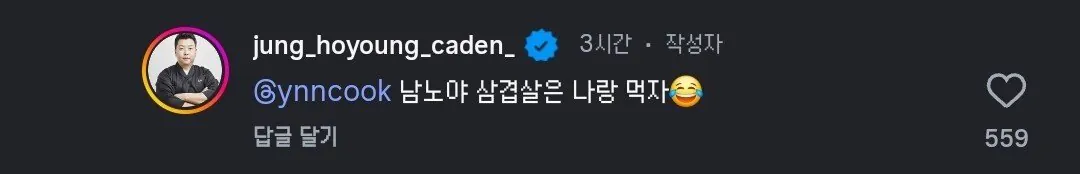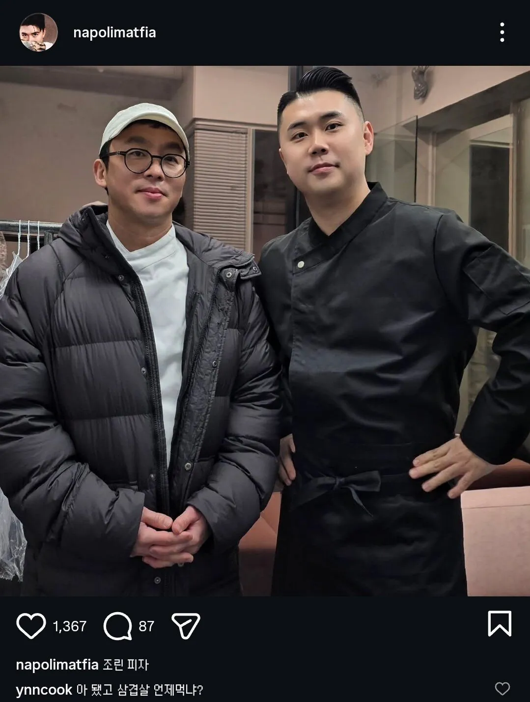 온갖 친한 셰프들한테 다 삼겹살 먹자 하고 다니는 윤남노