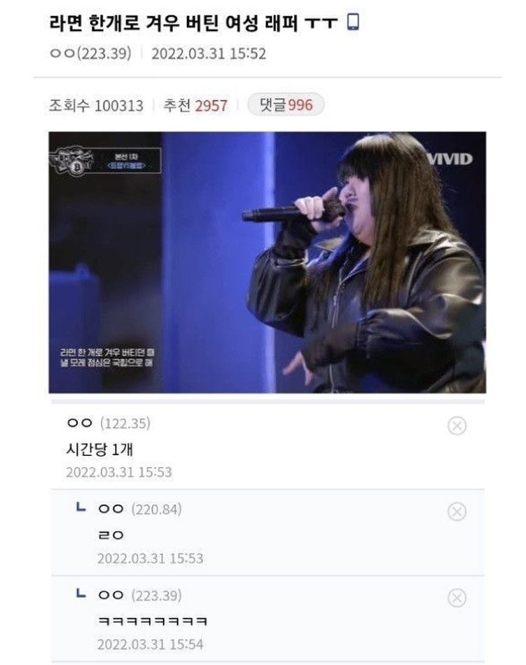 라면 한개로 겨우 버틴 여성 랩퍼