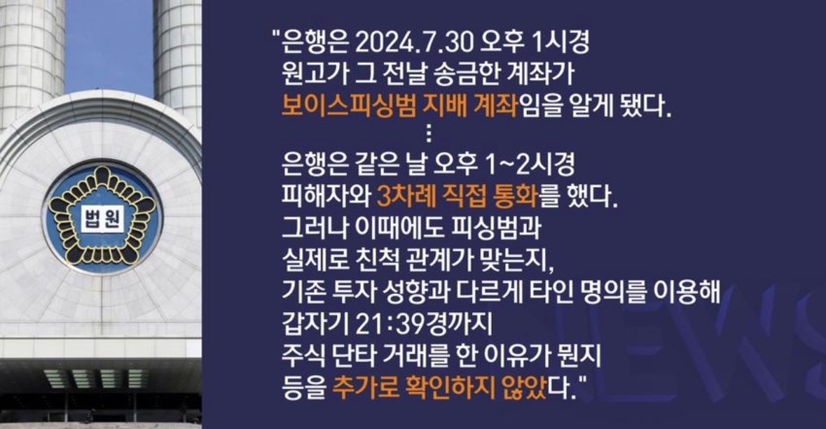 피싱범에 직접 송금했어도 은행 30% 배상