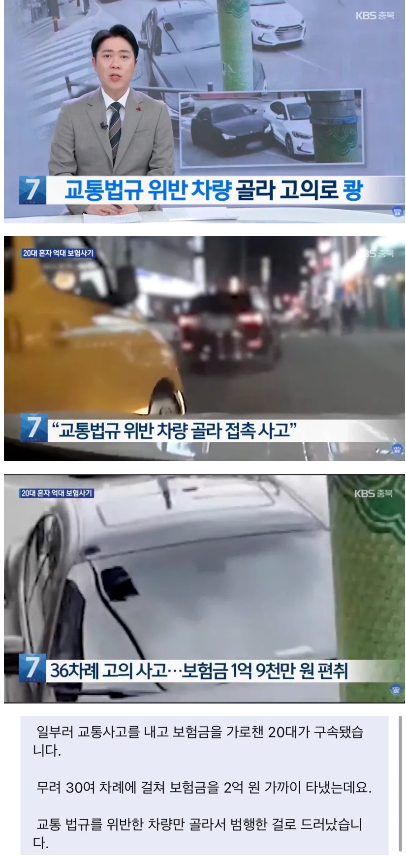 교통법규 위반 차량한테만 사고낸 20대 잡힘
