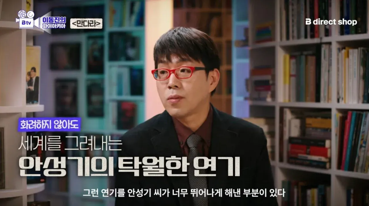 - 안성기의 필모그래피를 보면 혼자 스포트라이트를 받으면서 도드라지는 연기는 생각보다 적고, 영화의 환경이자 토양이 되고 그 세계의 분위기를 체현해내는 배역이 더 많다. 이 영화가 딱 그런 작품으로, 안성기가 영화를 받쳐주고 중심을 잡는 연기를 너무 뛰어나게 펼쳐냈다.