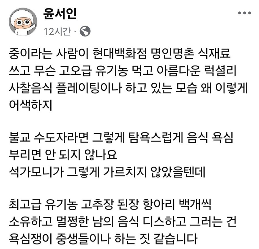 선재스님 비판하는 윤서인 작가