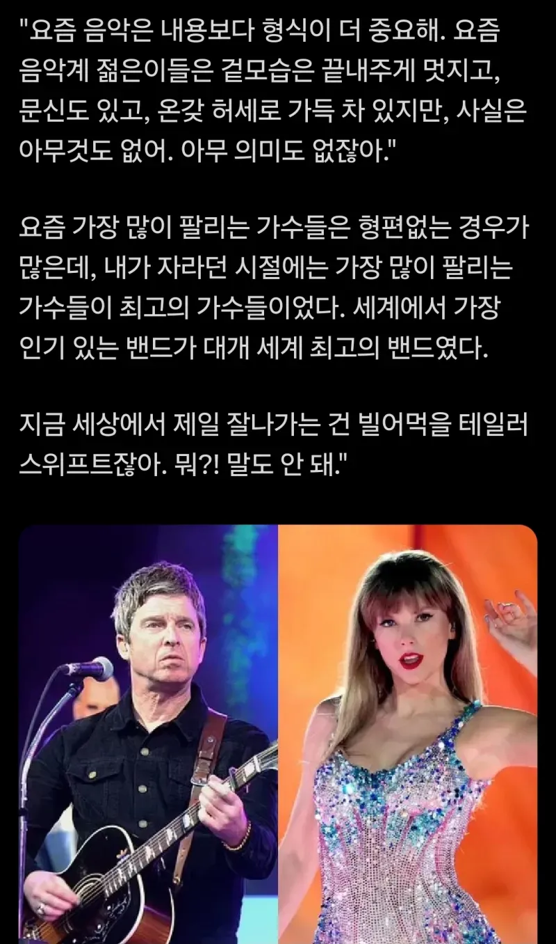 테일러 스위프트를 저격한 오아시스 노엘 갤러거