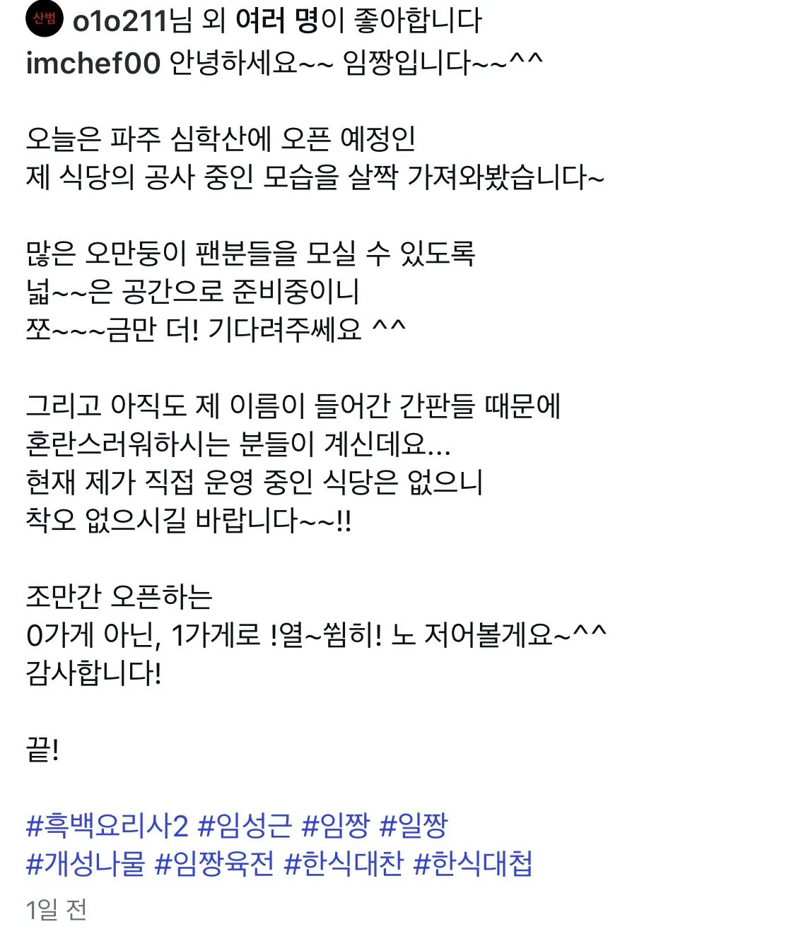 임성근 임짱이 공개한 공사중인 짜글이 가게