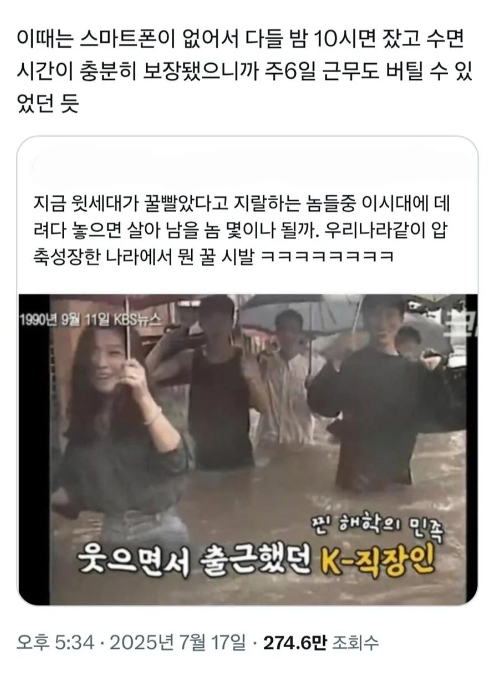 90년대에는 일찍 자서 주6일 근무 버팀