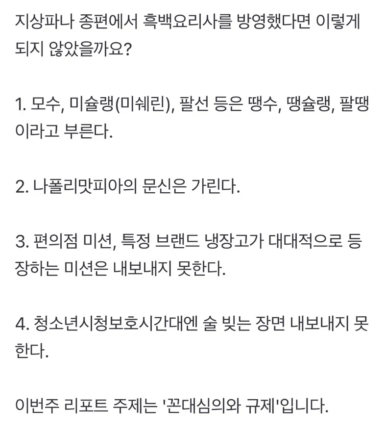 "흑백요리사"는 하는데 지상파·종편은 못하는 것