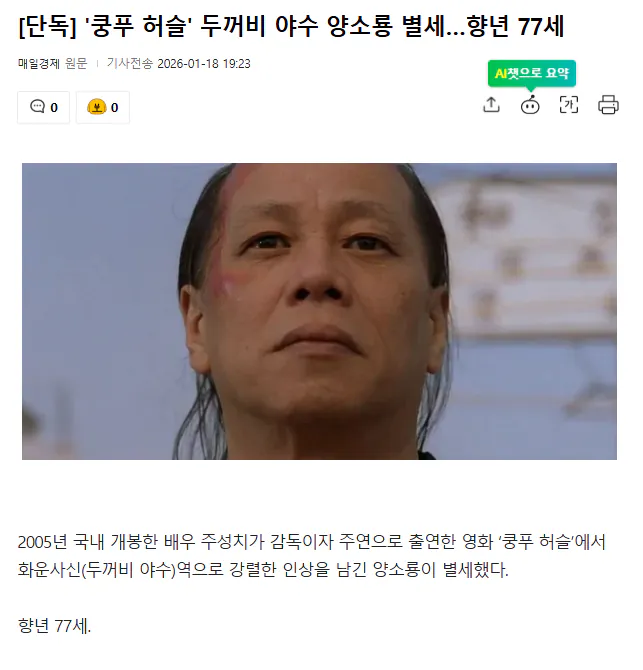 <쿵푸 허슬> 화운사신 역으로 잘 알려진 배우 양소룡 별세