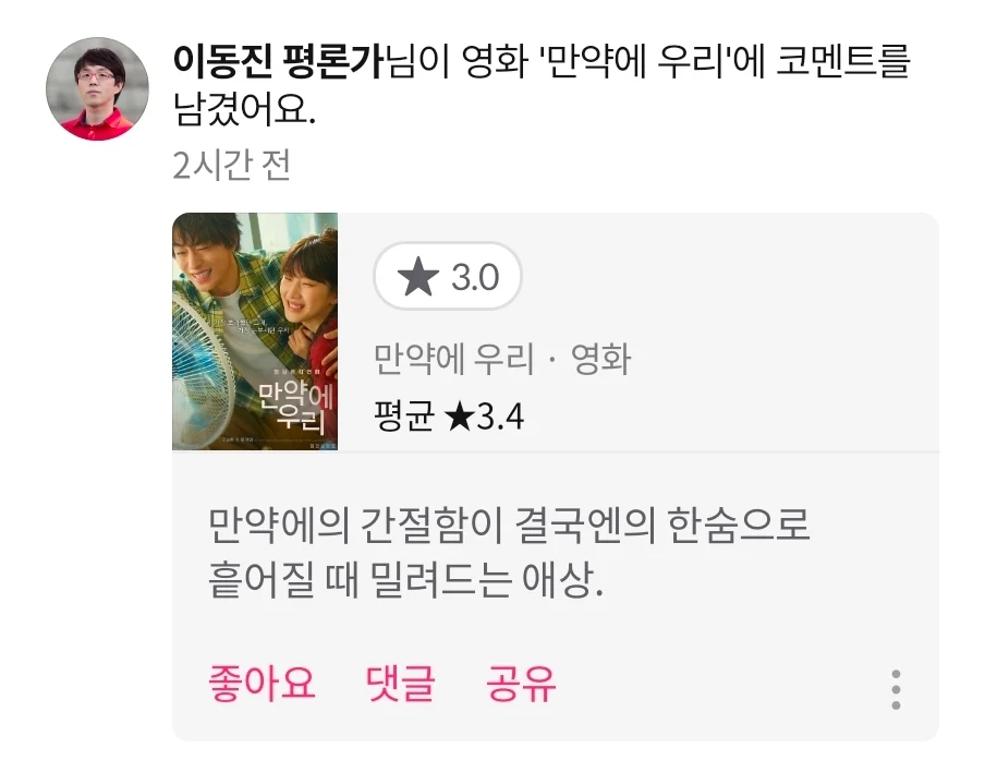 [이동진] 흥행을 달리고있는 "만약에 우리" 평점 공개