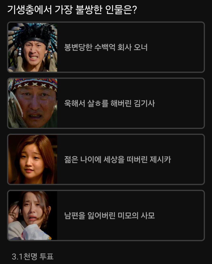영화 기생충에서 가장 불쌍한 인물은?