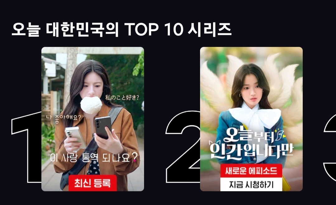 한국 넷플릭스 top10에 든 드라마