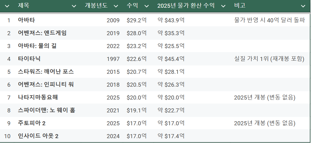 역대 개봉 영화 (모든 장르) 9위