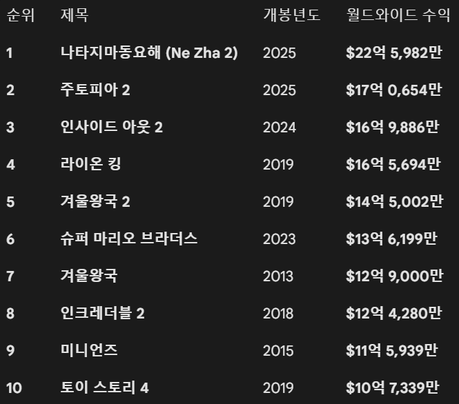 역대 개봉 영화 (애니메이션) 2위