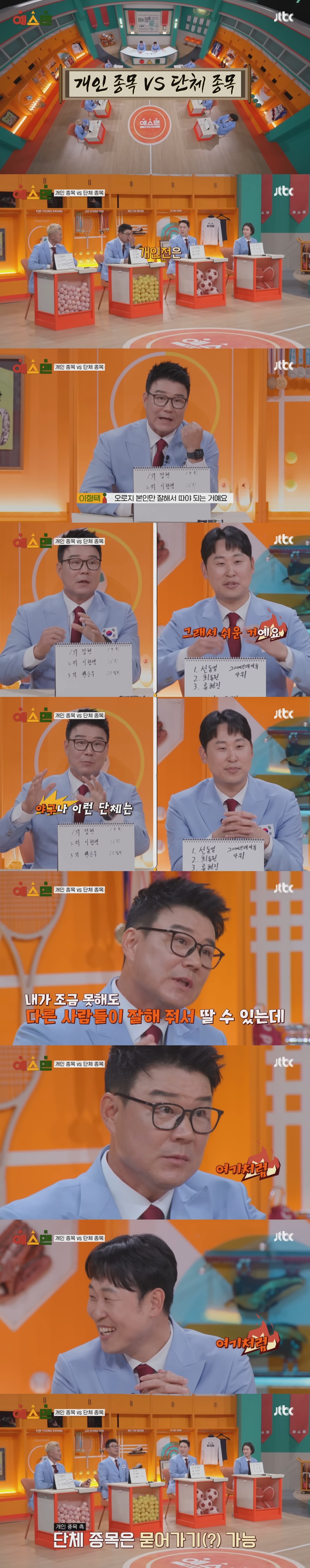 개인전과 단체전 중 어떤 게 더 어려운지로 논쟁이 붙음