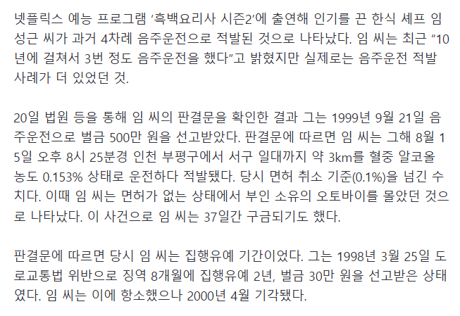 99년도에 무면허 음주운전한거도 걸림