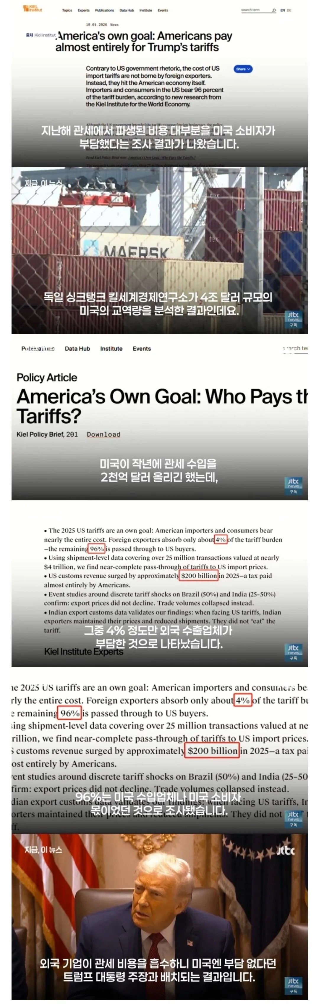 조사 결과 트럼프 관세 96%를 미국인이 부담하고 있었음