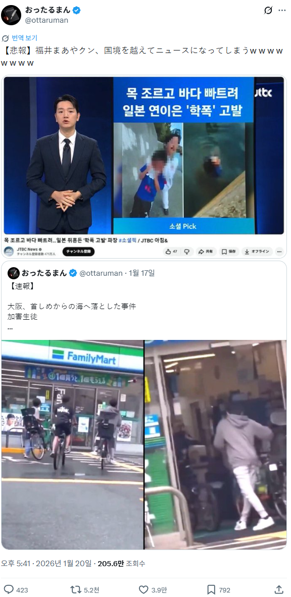 자신이 공론화한 학폭이 한국 뉴스에 나와 기분좋은 일본인