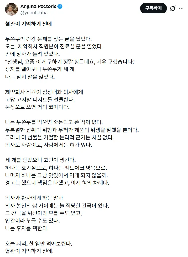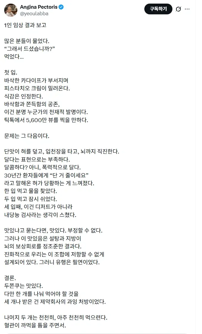 "의사들은 두쫀쿠 안 먹는다"