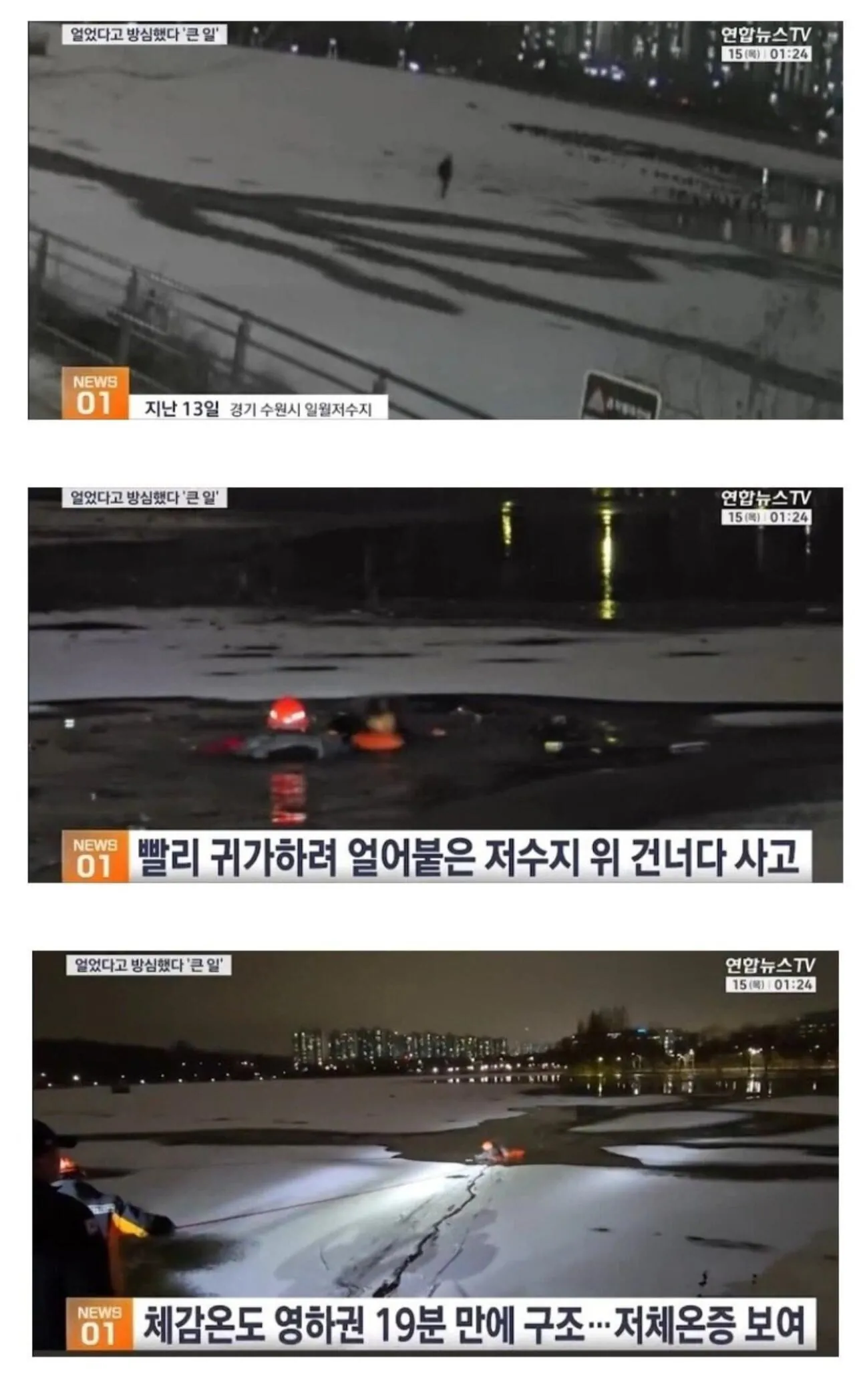집에 빨리 귀가하려 얼어붙은 저수지 위 건너다 사고