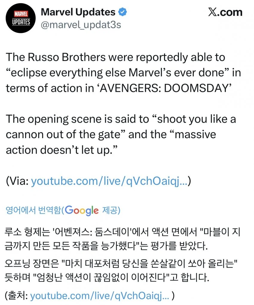 <어벤져스 : 둠스데이> 오프닝장면 역대급으로 평가받는중