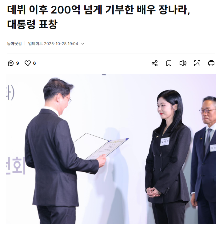 장나라가 대통령 표창 받은 이유