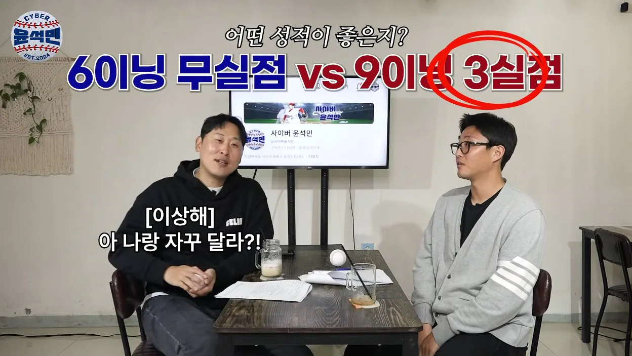 윤석민이 물어본 6이닝 무실점 투수 vs 9이닝 3실점 투수