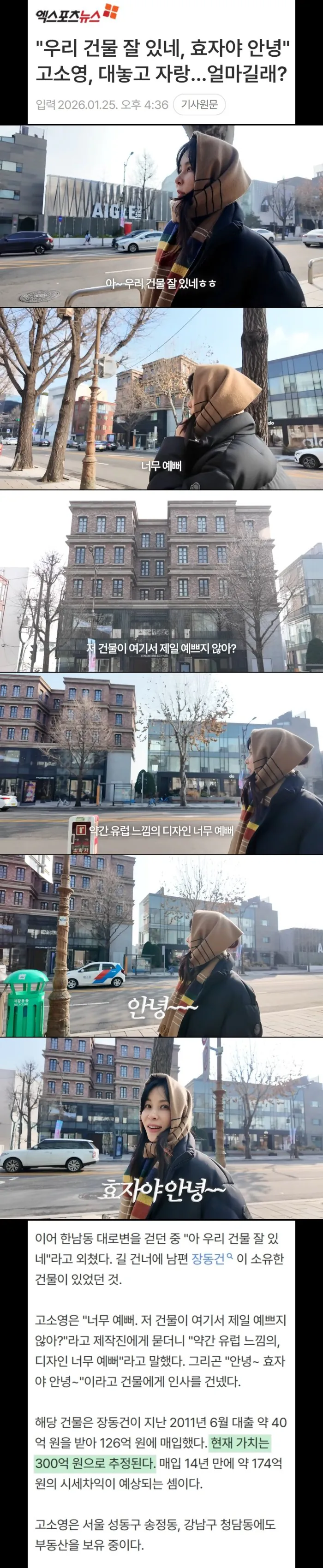 대놓고 300억짜리 한남동 건물 자랑했다는 고소영