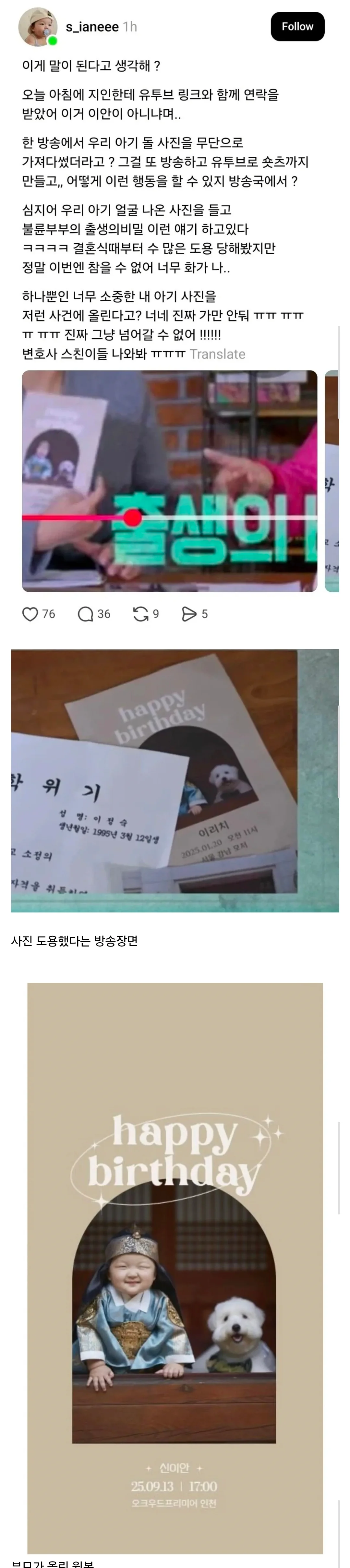 남의 애기 돌 사진 무단 사용하다 걸린 sbs