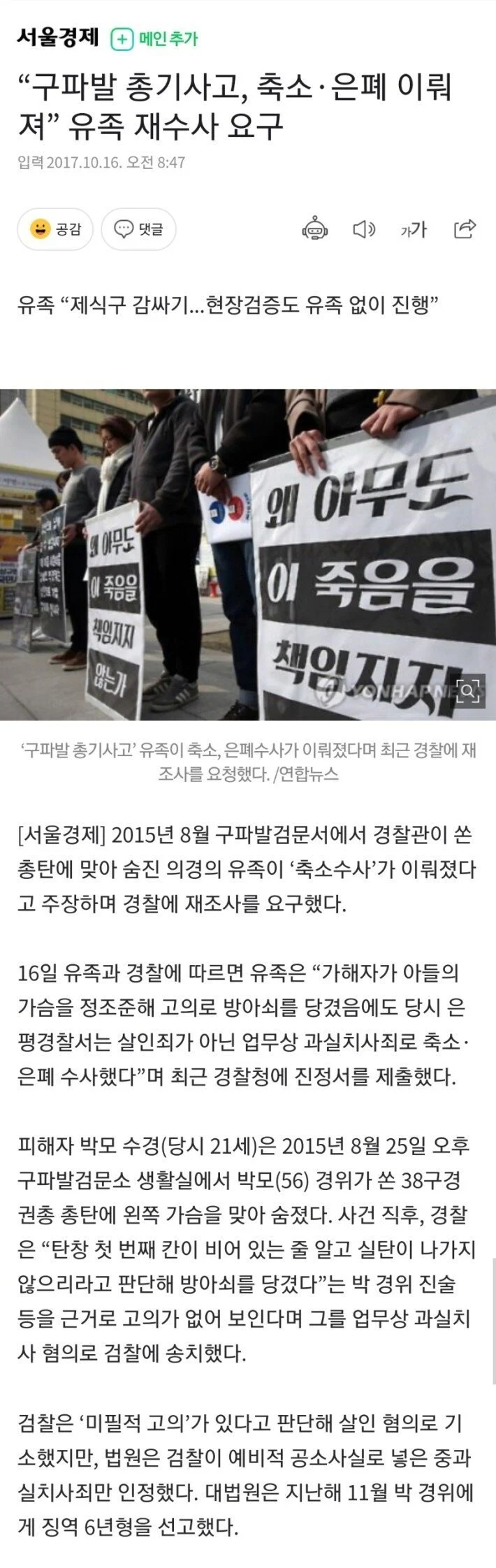 2016년 1월 27일, 선고공판에서 1심 재판부는 박 경위의 살인 고의성을 인정하지 않고