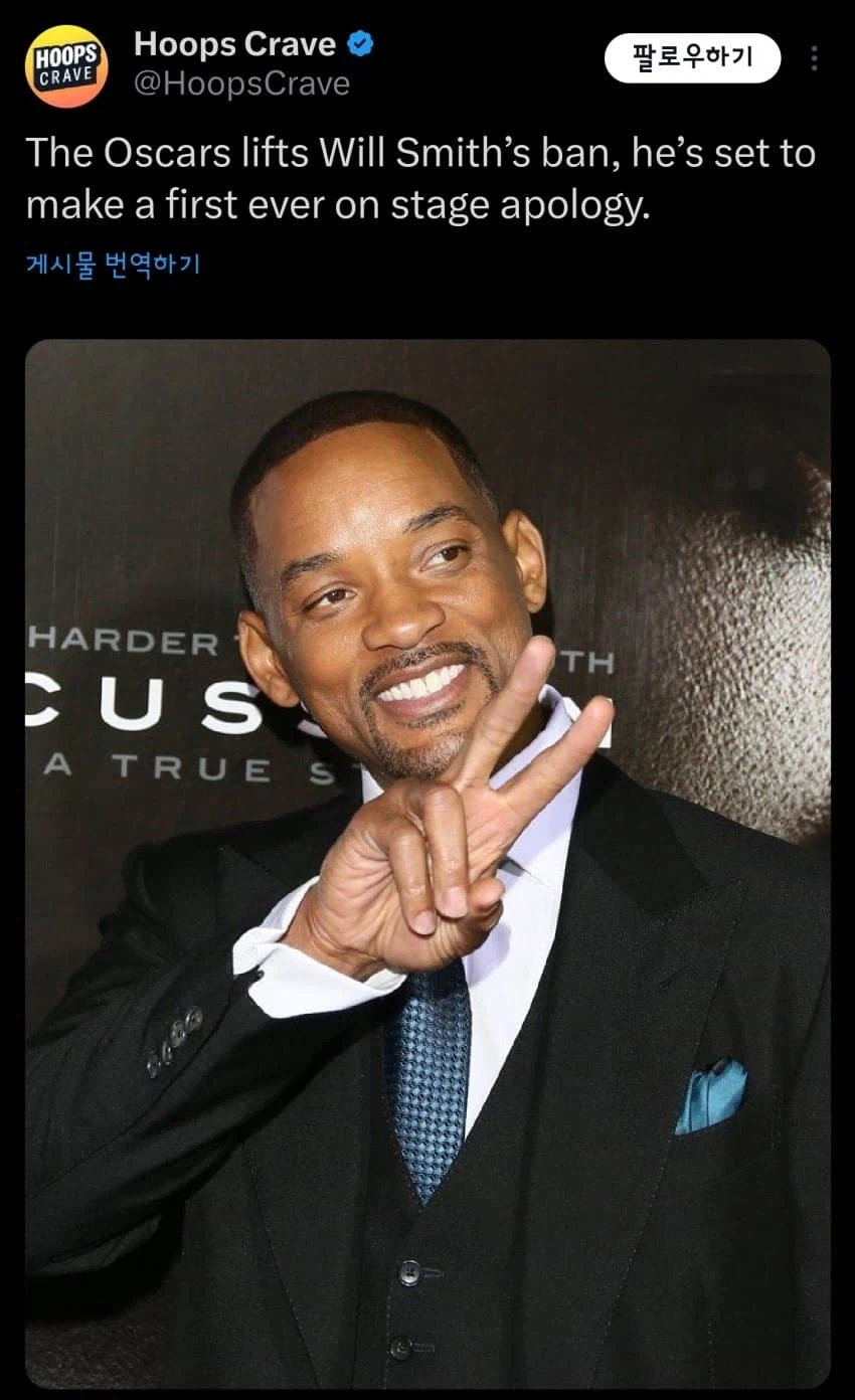 윌스미스가 직접 올라가서 사과할 예정이라고함